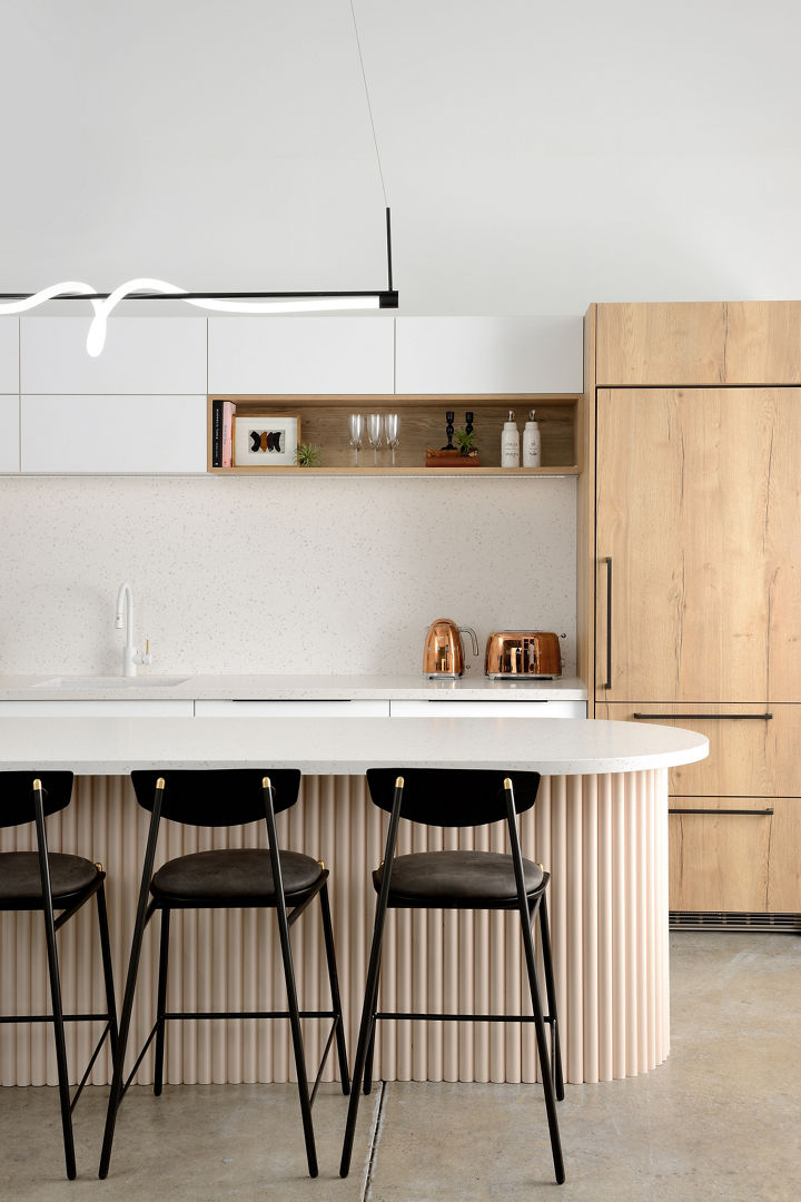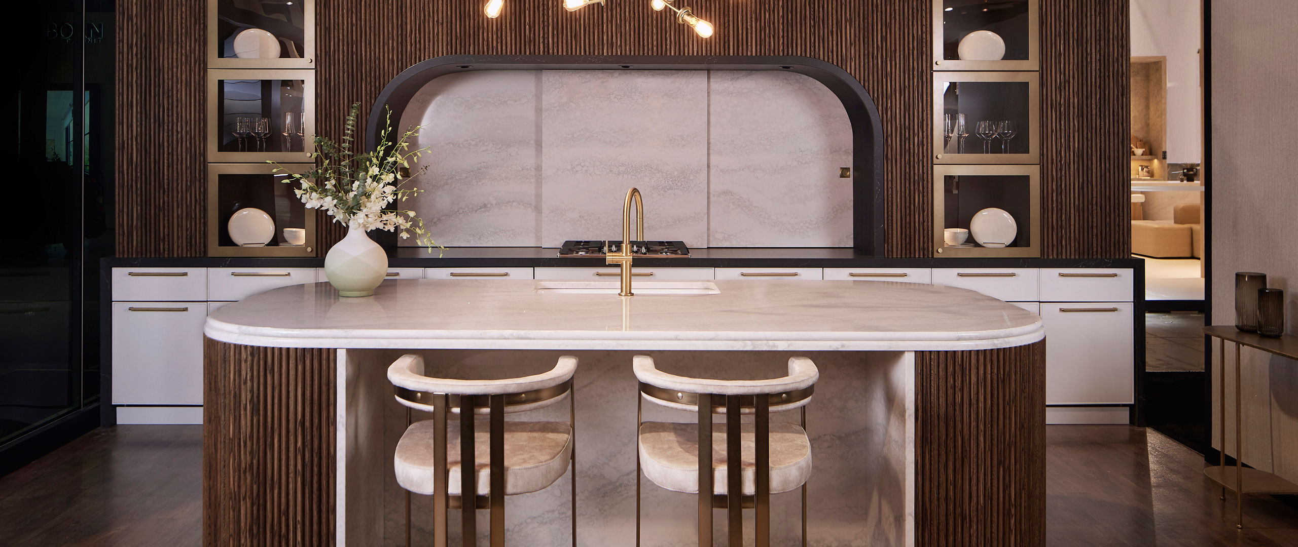If you want to make a bold design statement, a structural or sculptural kitchen island can transform the entire space into a work of art. These bespoke pieces showcase the craftsmanship and versatility of quartz surfaces. Unexpected angles, and curved or fluted details can catch and play with light and shadow. Choosing this direction is as much about personal expression as it is about design innovation. It’s perfect for homeowners who view their kitchen as a showpiece rather than simply a workspace.