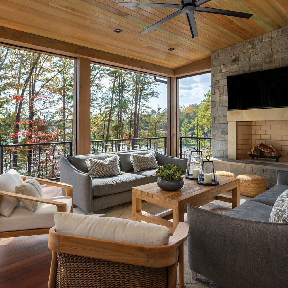 Since two of the clients’ oldest children attend a university nearby, this vacation home in the lakefront community of Sunset on Lake Keowee is “a place of respite for their many trips back and forth,” Ramsey notes.
