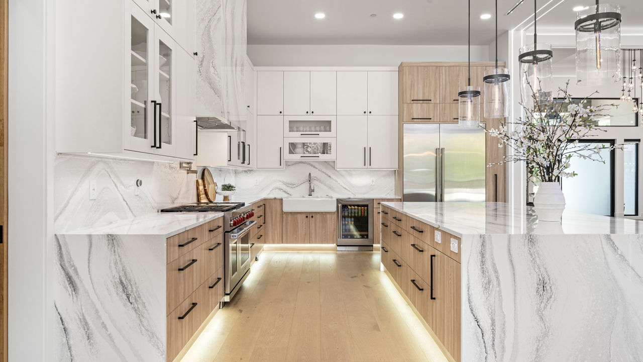 GVD Renovations incorporates stunning quartz applications throughout this beautiful custom home.
