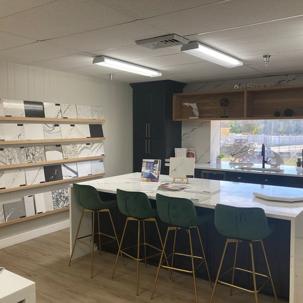 - Welcoming showroom with a wide variety of Cambria designs on display