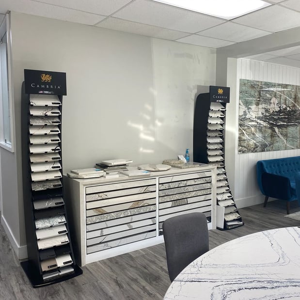 - Welcoming showroom with a wide variety of Cambria designs on display