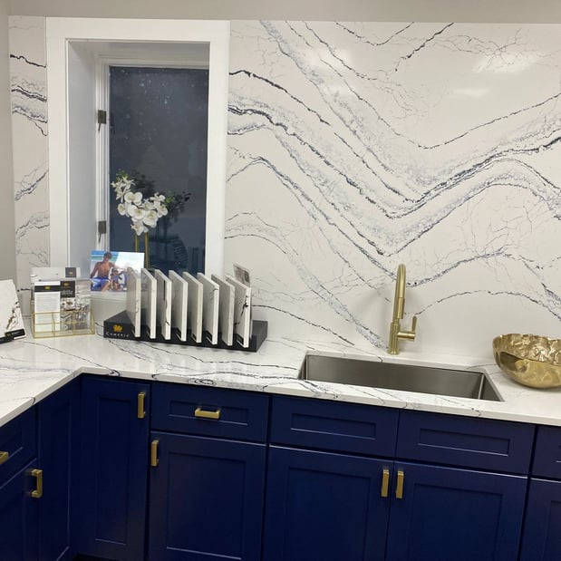 - Welcoming showroom with a wide variety of Cambria designs on display