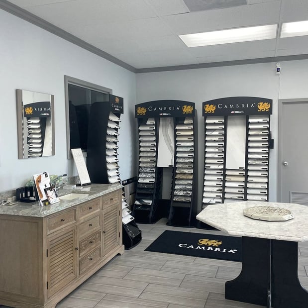 - Welcoming showroom with a wide variety of Cambria designs on display