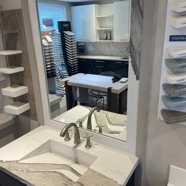 - Welcoming showroom with a wide variety of Cambria designs on display