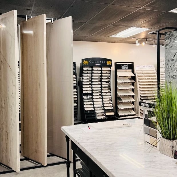 - Welcoming showroom with a wide variety of Cambria designs on display