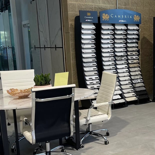- Welcoming showroom with a wide variety of Cambria designs on display