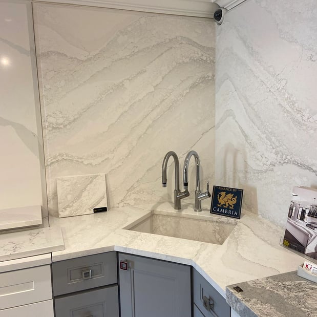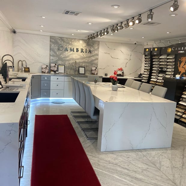 - Welcoming showroom with a wide variety of Cambria designs on display
