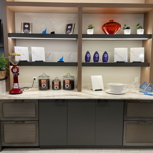 - Welcoming showroom with a wide variety of Cambria designs on display