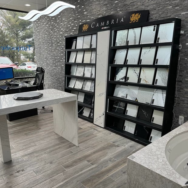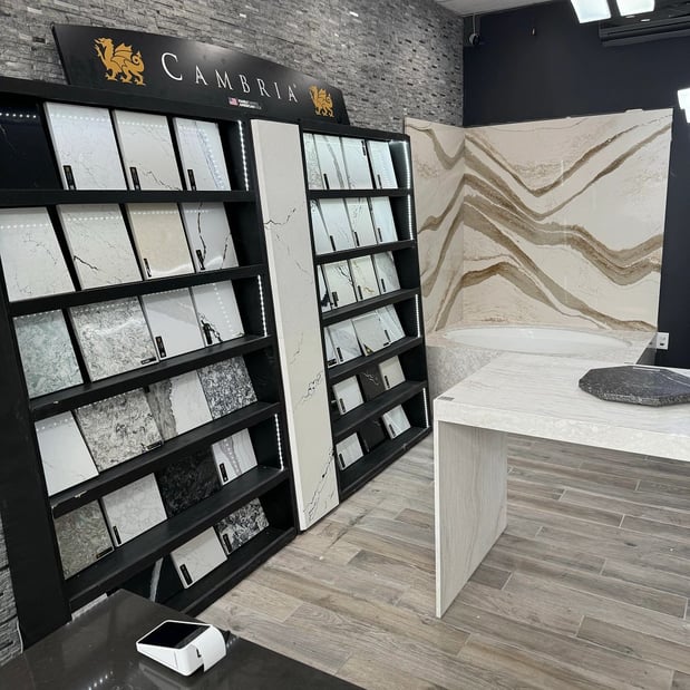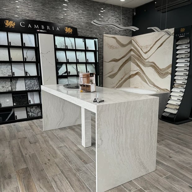 - Welcoming showroom with a wide variety of Cambria designs on display