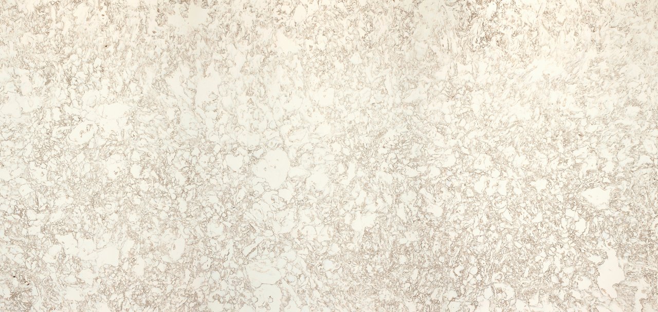 This design sample is a small select cut from a slab; it does not fully exhibit all the design characteristics of the final installed product. Cambria is pure natural quartz. Variations in the natural quartz stone color, pattern, size, shape, and shade are unique and inherent characteristics of this product. Cambria is not a seamless product; seams are visible. Where there are seams, the product pattern and shade will change. These variations do not affect performance and do not qualify for product replacement. Cambria Matte® finish will show surface markings caused during normal use, which are easily removed by simply washing with a soft cotton cloth and warm water; use a mild soap if desired. This design has large visible surface movement.