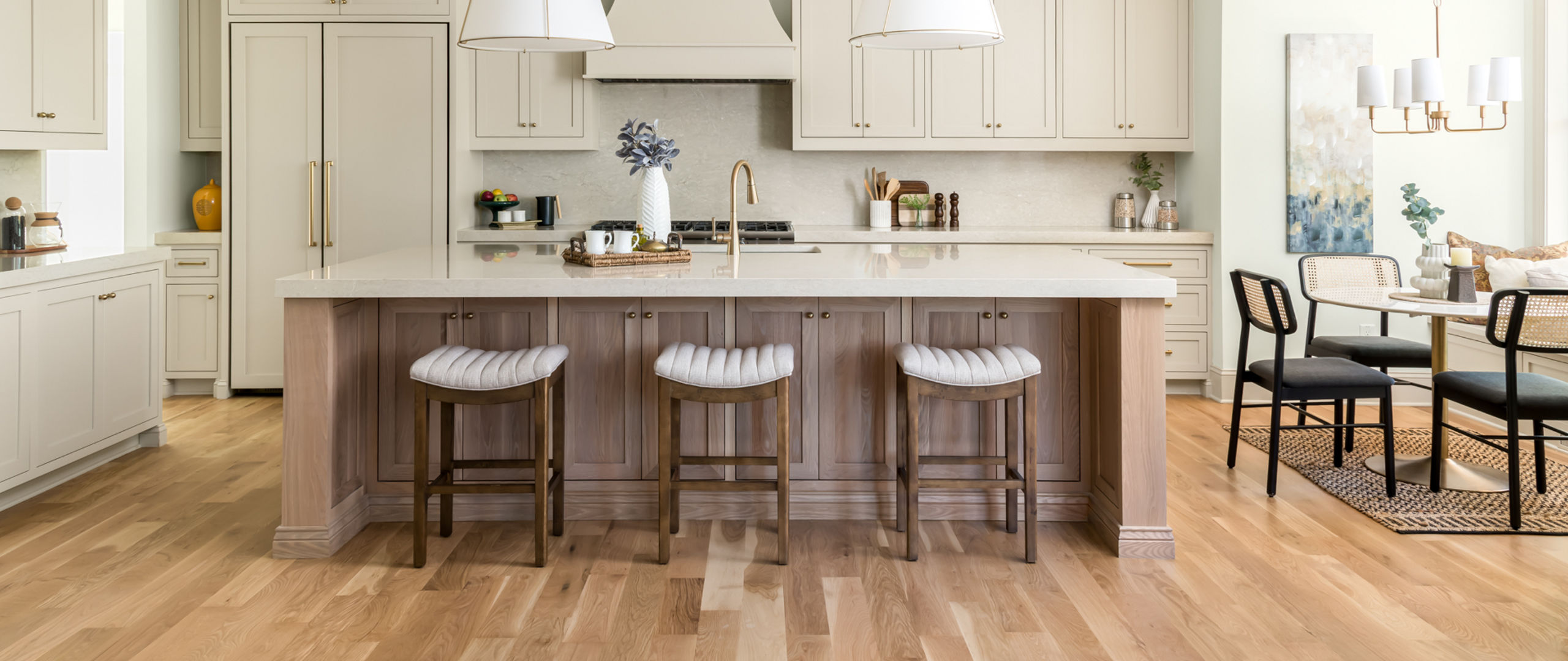 Stone Creek: Defined by natural elegance, Stone Creek showcases Bradford Custom Homes & Remodeling’s more refined approach to design. The kitchen features MonTaaj, chosen for its warmth, depth, and luxurious feel. “This design felt more organic and natural, which is really popular with our clients today,” Brad says.
