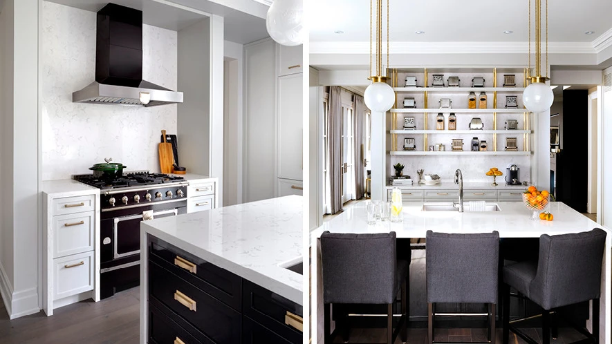 3. Add Drama and Contrast with a Full-Height Quartz Backsplash