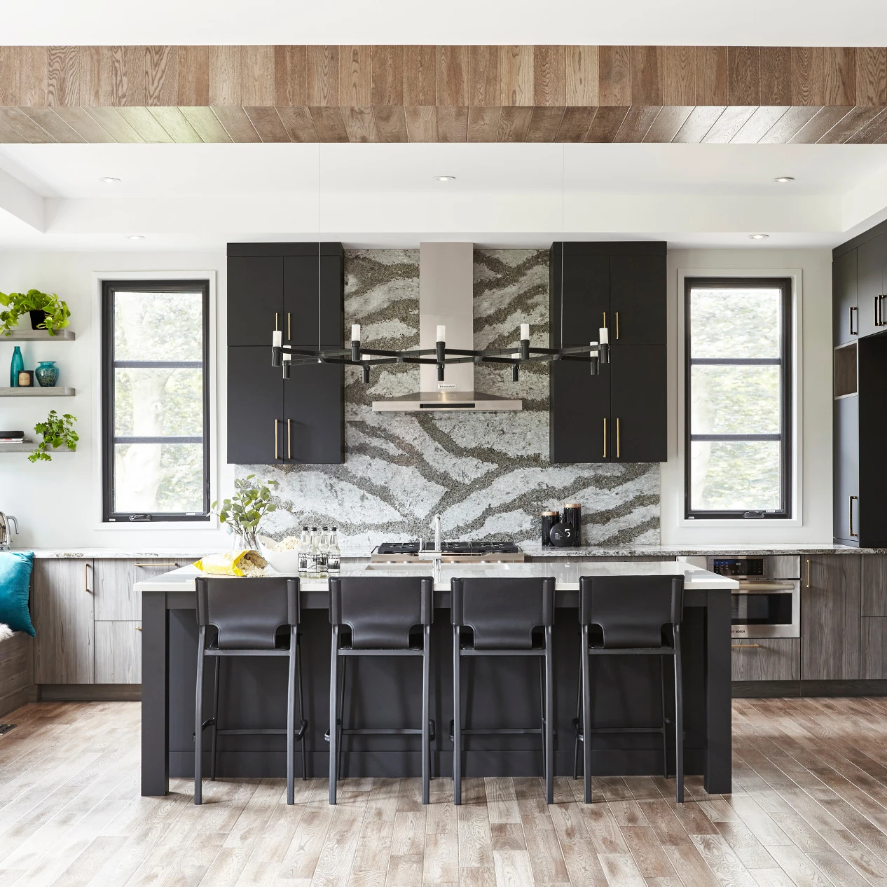 Black and white remain a classic choice in interior design. An Oakleigh™ countertop and backsplash creates coordination and a spark of individuality with its deep black veins juxtaposed with understated gold. Photo by Real Tours Photography