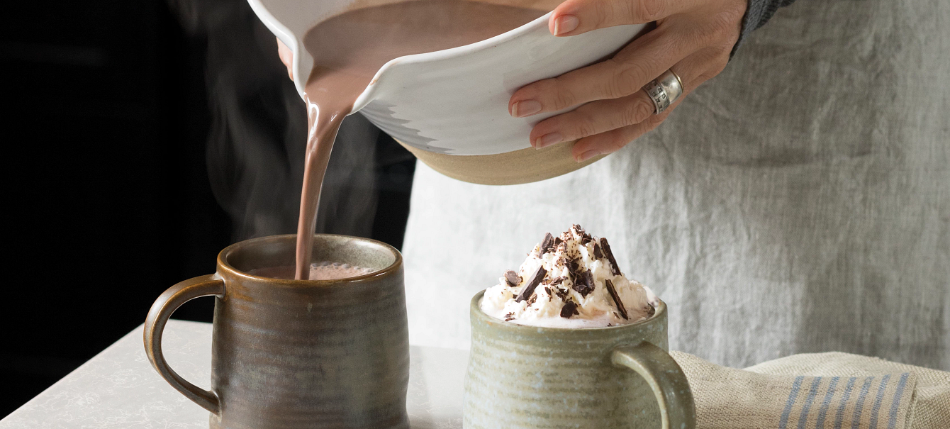 After chocolate is melted, stir in 1–2 c. good red wine—such as cabernet sauvignon, pinot noir, or merlot—and add sugar to taste. Finish with a dusting of cocoa powder and grated fresh orange peel.